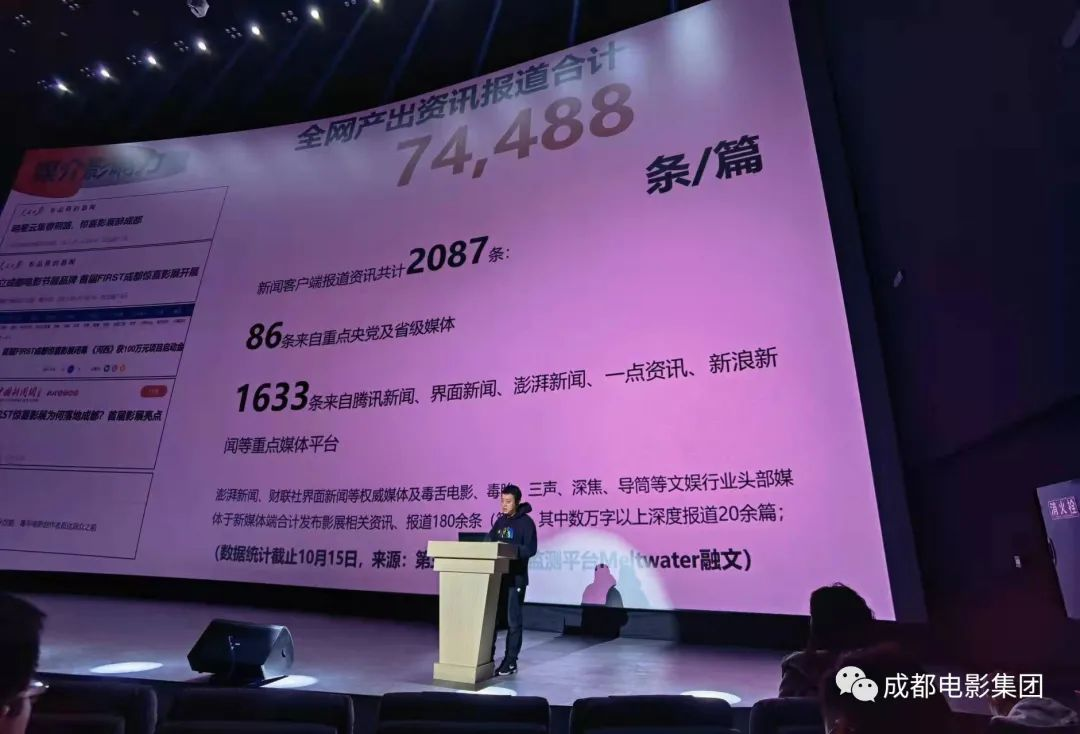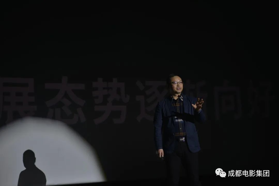 年終大會上“FIRST成都驚喜影展”項(xiàng)目由金沙院線董事長賴崇雷同志對全體員工進(jìn)行分享和介紹,總結(jié)此次項(xiàng)目成果及收獲。